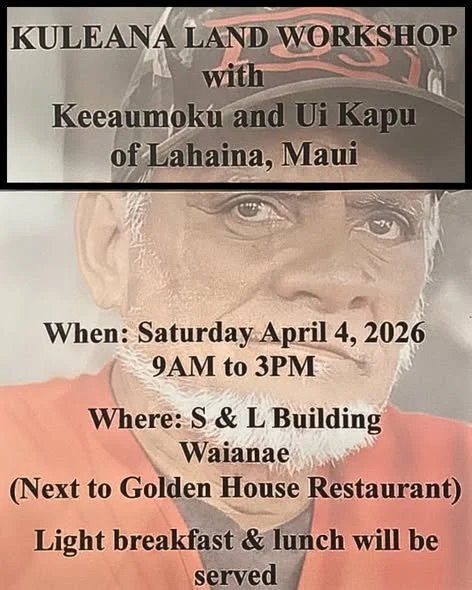 Kuleana Land Workshop 9 am - 3 pm S & L Building in Wai‘anae - Breakfast and Lunch Provided
